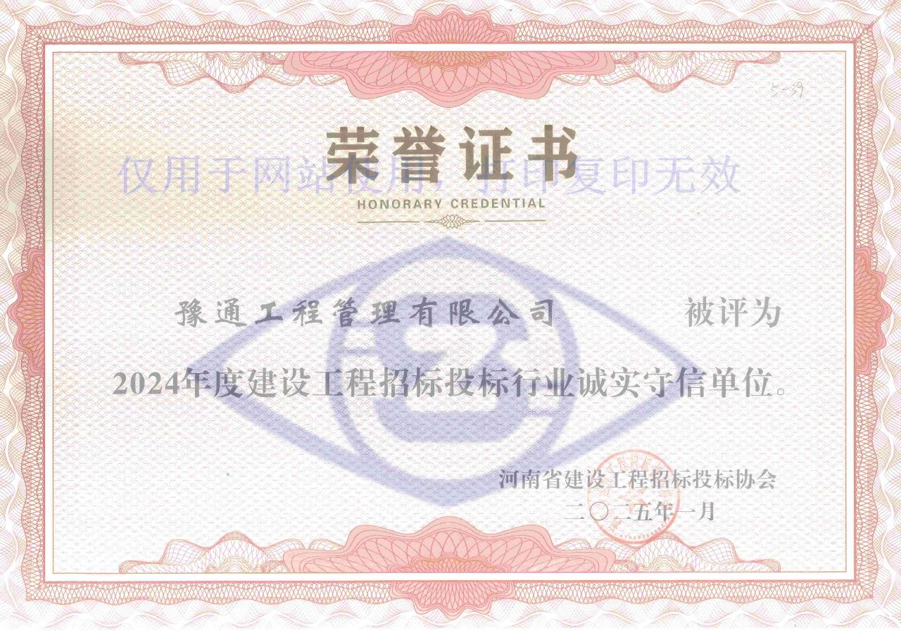 近日,河南省建設(shè)工程招標(biāo)投標(biāo)協(xié)會(huì)發(fā)布《關(guān)于公布2024年度建設(shè)工程招標(biāo)投標(biāo)行業(yè)誠實(shí)守信單位的通知》,我公司憑借良好的信譽(yù),成功獲評(píng)“2024年度建設(shè)工程招標(biāo)投標(biāo)行業(yè)誠實(shí)守信單位”榮譽(yù)稱號(hào)。